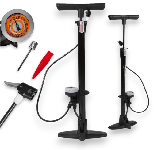- solidnej podstawie i uchwyt umożliwiające przytrzymanie pompki nogami podczas pompowania