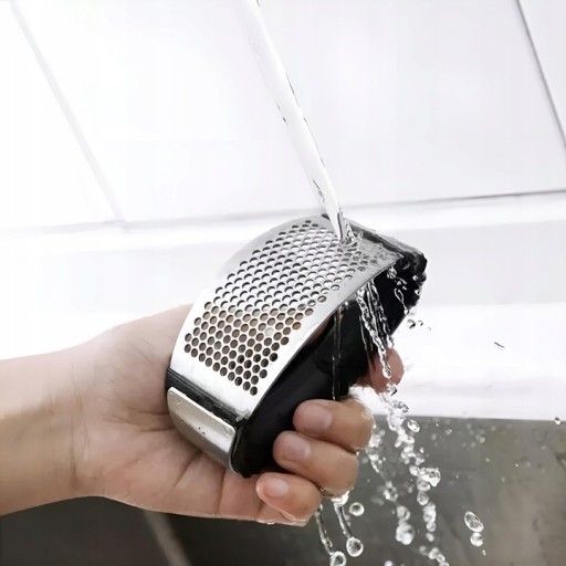 Użycie praski jest bardzo proste. Wystarczy docisnąć ząbek do płaskiej powierzchni za pomocą praski. Przeciśnięty czosnek znajdzie się na wewnętrznej stronie praski, dzięki czemu bez problemu można go zebrać i dodać do dania.
