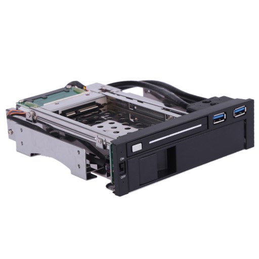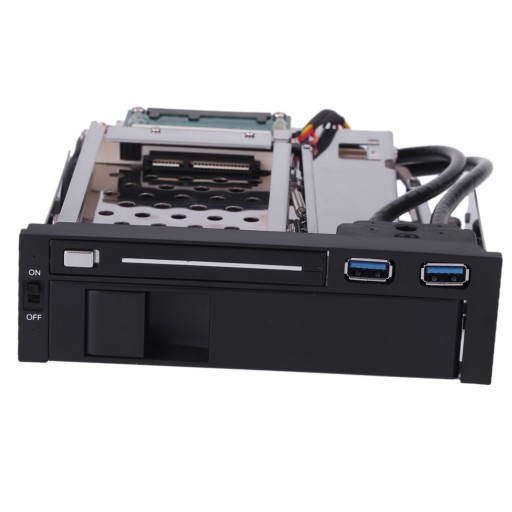 Ta 2-kieszeniowa wewnętrzna mobilna szafa SATA zawiera wnękę 2,5" SSD/HDD i wnękę 3,5" HDD na wnękę 5,25". Nie wymaga sterowników ani oprogramowania, obsługuje obsługę hot swap, plug and play. Nowoczesny standard 2 porty USB 3.0 i ON przełącznik zasilania /OFF elektrycznym napędem 2,5" i 3,5".