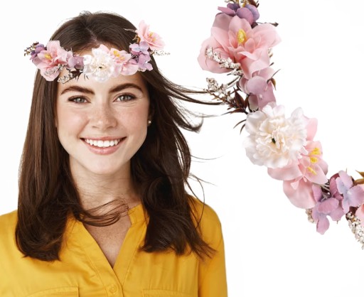 Romantyczny wianek na głowę z wysokiej jakości kwiatów sztucznych.