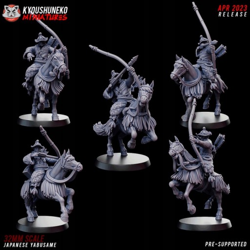 Przedmiotem oferty jest zestaw pięciu modeli Japanese Yabusame od Kyoushuneko Miniatures, wydrukowanych na drukarce 3D w technologii SLA.