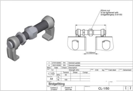 Bridge Fitting, specjalne śruby spinające ściany kontenerów morskich lub biurowych. Usztywnia się dzięki temu cały ciąg kontenerów i tworzy zwartą konstrukcję.