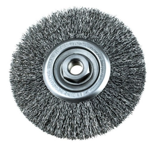 - Szczotki tarczowe z nakrętką przeznaczone są do pracy w trudno dostępnych miejscach. Im mniejsza średnica szczotki, tym większa możliwość penetracji niedostępnych miejsc. Praca tymi szczotkami może poprzedzać proces nakładania powłok ochronnych, np. malowanie. Idealna do czyszczenia elementów z rdzy, starej farby czy innych zanieczyszczeń.