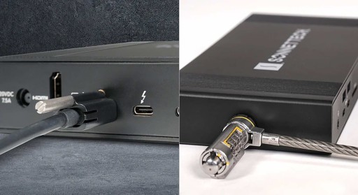 Bezpieczeństwo – kabel Thunderbolt 4 i ThunderLok 4 w zestawie. Blokada Kensington gotowa.
