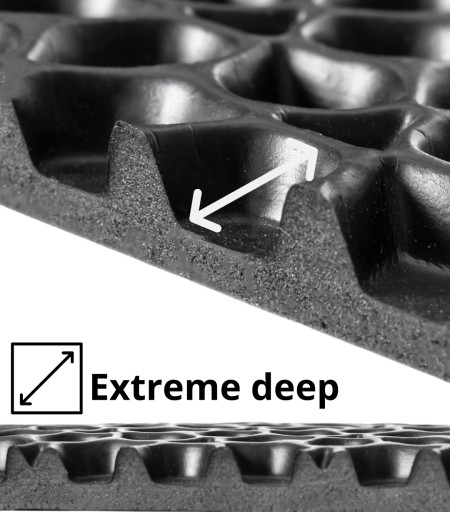 Czarny materiał EVA o głębokiej budowie (kropelka wody) pochłaniający dużą ilość zanieczyszczeń, bezpieczny i bezzapachowy.