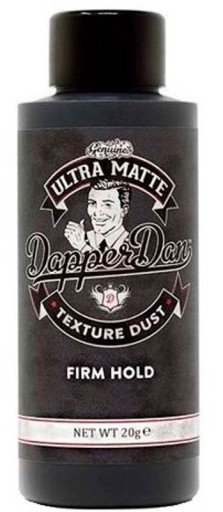 Dapper Dan brytyjski producent luksusowych kosmetyków dla mężczyzn. Pielęgnacja na światowym poziomie, do tego unikalny, stylowy i bardzo męski design. Ultra Matte Texture Dust to matujący puder do wykończenia stylizacji. Nie skleja włosów nadając im matowe wykończenie. Najlepiej sprawdza się na krótkich i średnich długościach włosach. Puder posiada dość mocny chwyt, co zapewnia trwałość fryzury przez cały dzień. Łatwo się aplikuje i nie pozostawia osadu.