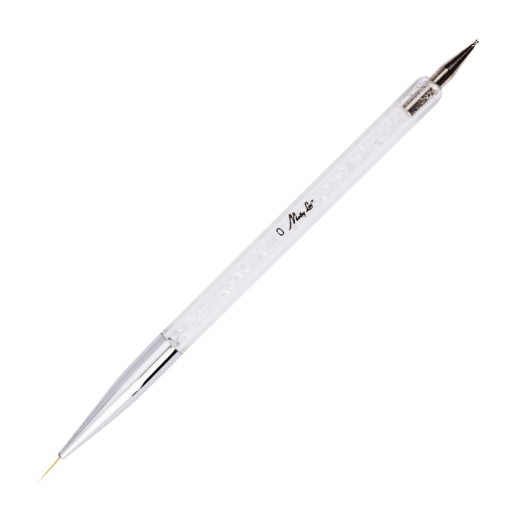 Pędzelek do zdobień z sondą narzędzie 2w1 biały z cyrkoniami długość włosia 11mm MollyLac