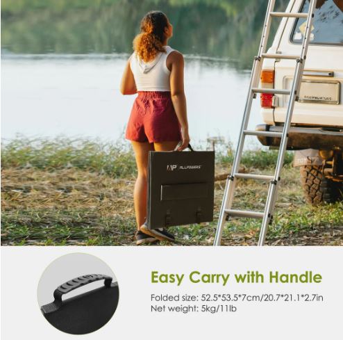 Allpowers AP-SP-035-BLA to przenośny monokrystaliczny panel słoneczny Allpowers 200 W, który jest odporny na kurz i wodę (IP66). Wykonany jest w zaawansowanej technologii laminowanej z trwałym materiałem ETFE, który jest bardziej odporny na zarysowania na powierzchni. Zastosowanie materiału ETFE sprawia, że panel jest popularnym wyborem do przyczep kempingowych, kempingów, wędrówek, wędkowania i wycieczek.