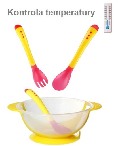 Miseczka z przyssawką łyżka widelec kontrola temp.