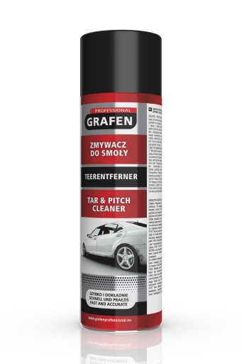 GRAFEN PROFESSIONAL zmywacz do smoły jest specjalnym preparatem do usuwania brudu / smaru / smoły z części samochodowych takich jak drzwi, zderzaki oraz maski bez uszkadzania lakieru. Poprzez swoje właściwości usuwa brud z części samochodu i czyści dogłębnie. Chroni przed utlenieniem i łatwo się aplikuje. Produkt może być użyty do samochodów, ciężarówek, busów, gokartów i traktorów.