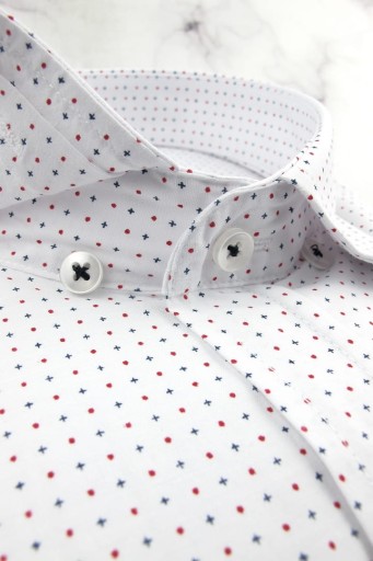 Oddajemy w Państwa ręce wysokiej klasy koszulę męską firmy DUST.. Koszule tej firmy charakteryzuje staranne wykończenie i idealny dobór tkaniny dzięki czemu są delikatne w dotyku i przyjemne dla ciała. Elegancki krój koszuli sprawia, że jest ona idealna zarówno na spotkania biznesowe, jak również do użytku codziennego.