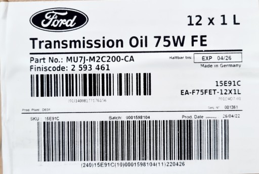 FORD OE 2593461 ТРАНСМИССИОННОЕ МАСЛО 75W FE ОРИГИНАЛ