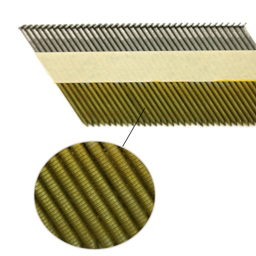 Gwoździe do gwoździarki łączone szeregowo na papierze znajdują swe zastosowanie w budownictwie, dekarstwie, stolarstwie, ciesielstwie i przy pracach wykończeniowych.
