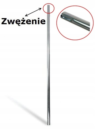 - Maszt z jednej strony posiada zwężenie, co umożliwia nałożenie kolejnej rury i przedłużenie wysokości.