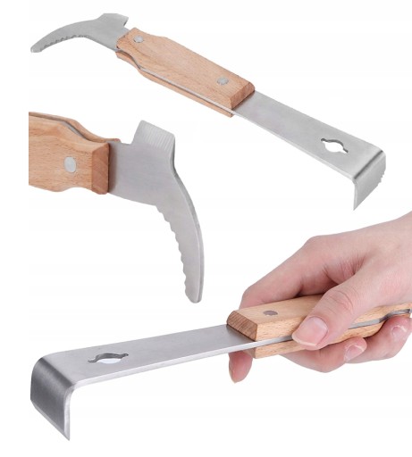 DŁUTO PASIECZNE Skrobak Rozpierak INOX Hak Drewniana Rączka do Ula Ramek