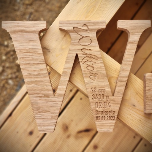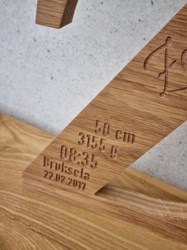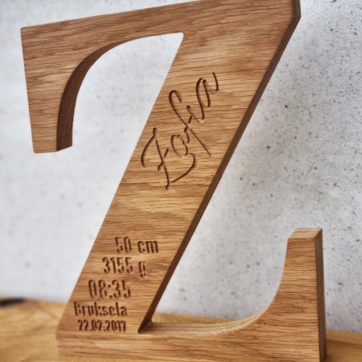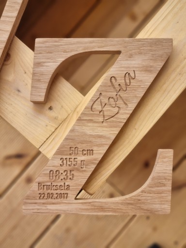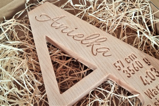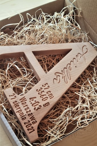 Drewniana litera, metryczka z drewna grawer 25cm, prezent na chrzest roczek