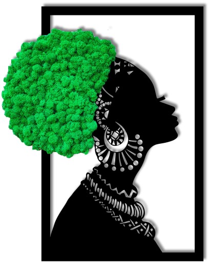 Dekoracja KOBIETA Z AFRO Z MCHU z mchem chrobotkiem AFRYKANKA 40 murzynka