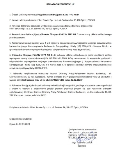 POLSKI PRODUKT - półmaska na twarz filtrująca, skuteczność filtracji – klasa FFP 2