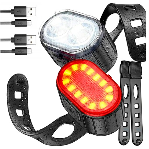 КОМПЛЕКТ СВЕТОДИОДНЫХ ВЕЛОСИПЕДНЫХ ЛАМП ПЕРЕДНИЙ ЗАДНИЙ ДЛЯ АККУМУЛЯТОРА НА РУЛЕ