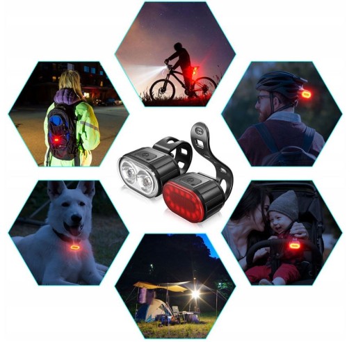 LAMPKA ROWEROWA LED ŚWIATŁO ZESTAW PRZÓD TYŁ NA KIEROWNICĘ AKUMULATOROWA