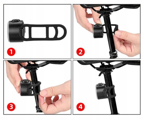 Lampkę łatwo jest zdjąć z roweru i naładować, przy pomocy przewodu USB. Jej obudowa jest wodoodporna, urządzenie można więc używać nawet podczas deszczu!
