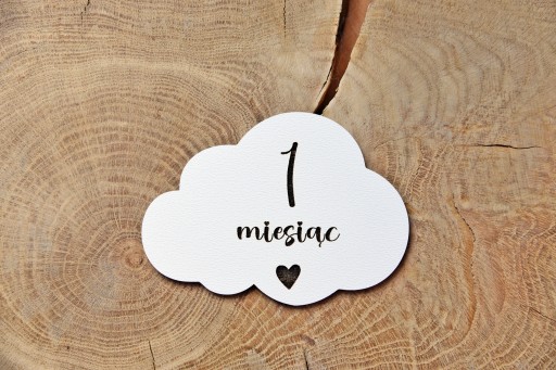 Komplet unikalnych tabliczek do zdjęć dokumentujących pierwsze 12 miesięcy życia w kształcie chmurki