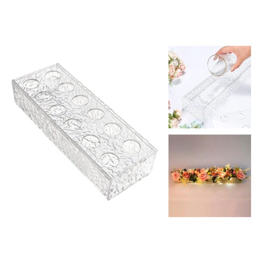 Przezroczysty akrylowy długi wazon Prostokątny wazon na kwiaty do dekoracji półki na biurko 30 cm x 10 cm x 6,5 cm