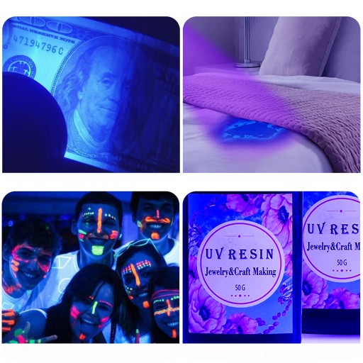 - Wszechstronne zastosowanie: uwierzytelnianie waluty i dokumentów urzędowych, takich jak prawa jazdy lub identyfikacja ciemnoskórego w kosmetykach; Utwardzać żywicę UV.