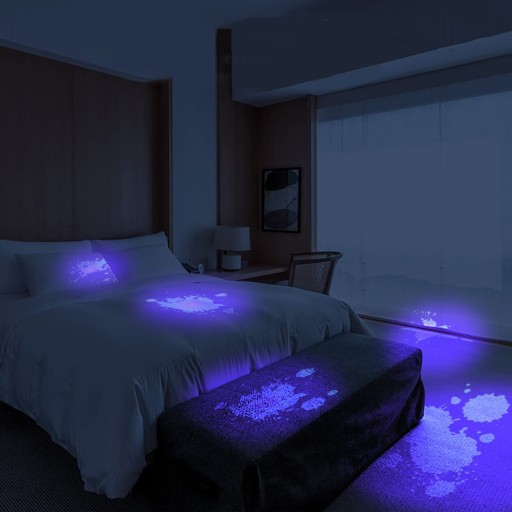 - obecność niewidocznych plamy: Latarka UV pomaga wykryć plamy z opieki i plamy z zwierząt domowych na dywanikach, dywanach i ubraniach, które w innym przypadku są niewidoczne gołym okiem.