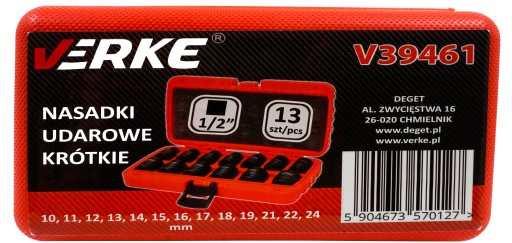 ZESTAW NASADEK UDAROWYCH KRÓTKIE 1/2" 10-24MM 13EL. VERKE