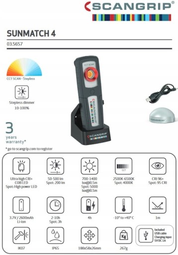 Scangrip 03.5657 SunMatch 4 CCT SCAN