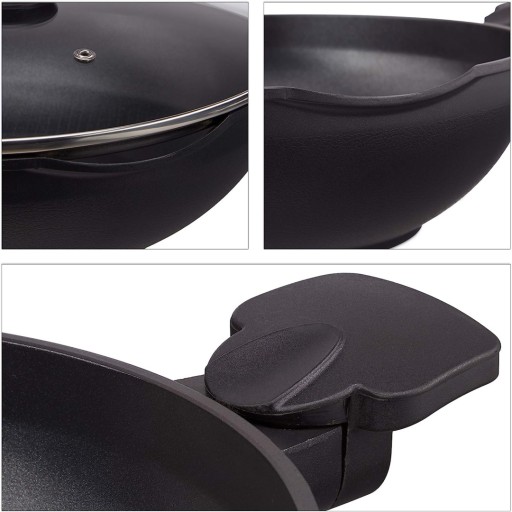- Spłaszczona: Patelnia wok z pokrywką ma płaskie dno i nadaje się do kuchenek gazowych, płyt ceramicznych lub kuchenek elektrycznych - Uwaga: Nie nadaje się do kuchenek indukcyjnych