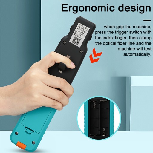 Ergonomiczna konstrukcja, gdy chwycisz maszynę, naciśnij przełącznik spustu palcem wskazującym, a następnie zaciśnij linię światłowodową, a maszyna przetestuje automatycznie.