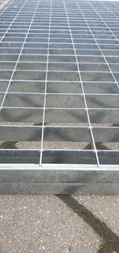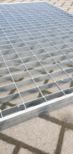 1 x krata dł. 121 cm (n) , szer. 122 cm , wys. ramki 5 cm , wys. płaskowników nośnych 3 cm, oczko 4/6 cm