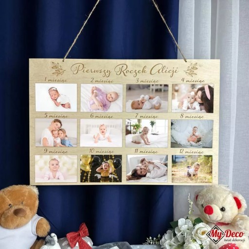 Ramka Tablica na 12 zdjęć Pierwszy Rok życia z imieniem sklejka