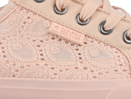 Zależy Ci na wysokiej wygodzie podczas chodzenia? Nie musisz dalej szukać! Damskie trampki marki BIG STAR spełnią wszystkie Twoje oczekiwania. To wygodne buty, które zapewnią komfort noszenia. Wykonane zostały z materiału tekstylnego. Posiadają wkładkę oraz sznurowanie. W środku posiadają miękką materiałową wkładkę. Lekka i elastyczna podeszwa wykonana z solidnej antypoślizgowej gumy osadzona na platformie, zapewnia stabilność i bardzo dobrą przyczepność do podłoża. Ten model z pewnością sprawdzi się w wielu codziennych stylizacjach, tych casualowych jak i sportowych. Można założyć je do jeansów, spodenek, legginsów, sukienek itp. Pasują praktycznie do wszystkiego!