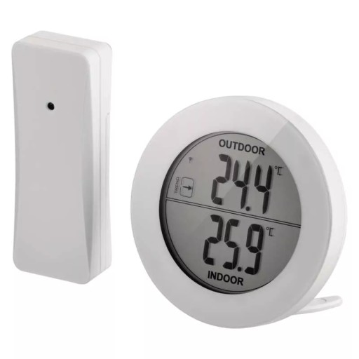 Produkt Termometr bezprzewodowy E0129 wyposażony jest w bezprzewodowy czujnik o zasięgu do 80 metrów. Stacja zasilana oraz czujnik są zasilane dwoma bateriami AAA 1,5V.