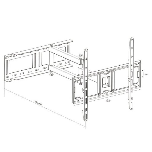 Konstrukcja uchwytu pozwala na powieszenie telewizora w odległości minimalnej od ściany wynoszącej 9 cm a po rozłożeniu maksymalnie aż 53 cm. Uchwyt posiada możliwość pełnej regulacji na boki oraz możliwość pochyłu kąta góra/dół o 5 stopni, dzięki czemu uchwyt gwarantuje idealne położenie telewizora w każdej sytuacji.
