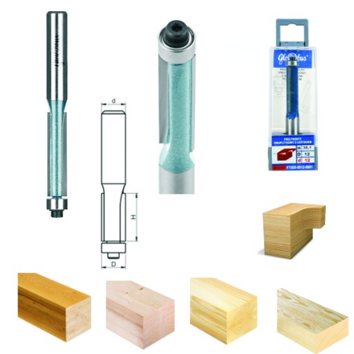 Wysokiej jakości frezy proste z wlutowanymi płytkami z węglika HM z łożyskiem dolnym umożliwiającym prowadzenie narzędzia po wzorniku przeznaczone do obróbki drewna litego na frezarkach górnowrzecionowych.
