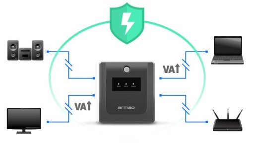 Armac oferuje ulepszone działanie UPS-ów poprzez zastosowanie funkcji Automatic Voltage Regulator. Dzięki AVR klasyczne rozwiązanie zasilania w topologii Line-Interactive zostaje usprawnione na wskutek wdrożenia autotransformatora sieciowego, który na bieżąco reguluje napięcie przekazywane urządzeniom podpiętym do UPS-a.
