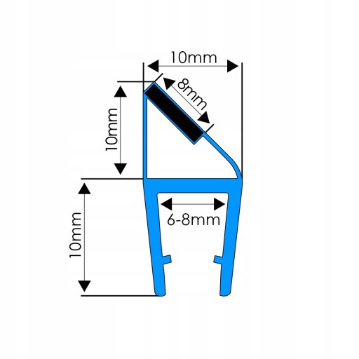 Uszczelka proponowana na tej aukcji posiada wymiary zgodne z rysunkiem widocznym obok. Materiał wykorzystany do produkcji tego typu uszczelki to PCV o bardzo dobrych parametrach fizycznych. Część montowana na szybę wykonana jest z materiału o twardości 80 SH D, natomiast element zabezpieczający przed nieszczelnością wykonany jest z materiału o twardości 70 SH D. Część magnetyczna uszczelki zapewnia szczelne domykanie drzwi kabiny.