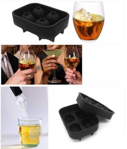 Czarna Silikonowa Foremka Do Lodu Na 4 Czaszki Czaszka
