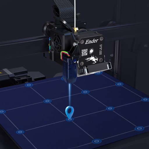 - System automatycznego poziomowania v2.0 zapewnia bezproblemowy procesem kalibrowania stołu grzewczego urządzenia. Drukowanie można rozpoczynać zaraz po zakończeniu zautomatyzowanej procedury auto-levelingu. Całość procesu obsługiwana jest za pomocą intuicyjnego i łatwego w użyciu wyświetlacza dotykowego o przekątnej 4,3''.