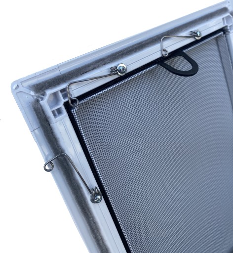 Moskitiery okienne wykonane są z grubościennego aluminium, dzięki czemu moskitiera posłuży przez wiele lat. Zaczepy sprężynowe - pozwalają zamontować moskitierę bez względu na grubość ramy okiennej.