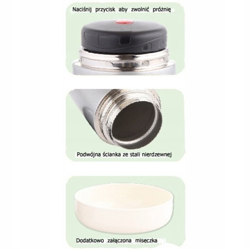Szeroki wlew pozwala przechowywać taką żywność jak zupy lub gulasze, itp.
