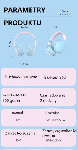 Przetwornik dynamiczny 40 mm pozwala na dźwięk przestrzenny i mocne basyWykorzystanie technologii Bluetooth 5.1 zapewnia większą transmisję danych, dzięki czemu zasięg transmisji danych, a następnie sygnał i wysoka jakość połączeń głosowych.Po sparowaniu można automatycznie sparować smartfon razem.