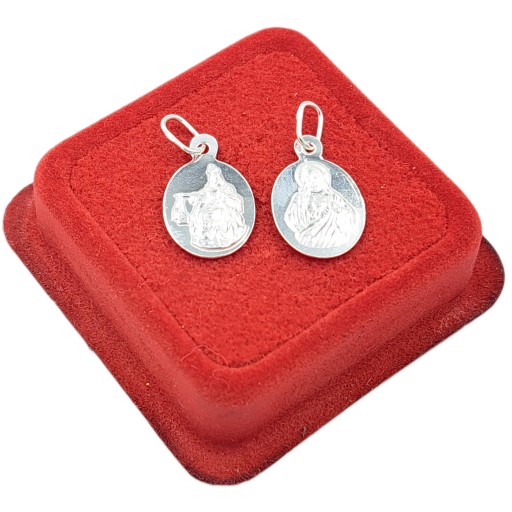 Srebrny medalik z wizerunkami Matki Bożej Szkaplerznej oraz Serca Pana Jezusa Chrystusa