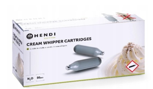 - Naboje do syfonu do bitej śmietany marki Hendi pasują do wszystkich obecnych na rynku urządzeń i mają aż 5-cio letni okres przydatności do użycia.