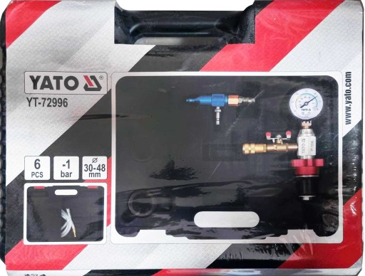 Zestaw marki YATO, przeznaczony do próżniowego napełniania układu chłodzenia. Pozwala na szybkie napełnienie układu płynem chłodzącym, bez wytwarzania pęcherzyków powietrza.