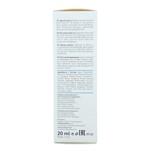 Krem używać w konsultacji ze specjalistą pielęgnacji stóp i/lub pod nadzorem podologa.